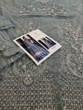 The Faiza Saqlain Wedding Edition – Chiffon Bridal in Sky is a spectacular couture piece that seamlessly blends traditional embellishment artistry with modern elegance. Crafted under the distinguished Faiza Saqlain brand, this bridal lehenga features layers of soft chiffon in a delicate sky‑blue hue, intricately adorned with shimmering silver embroidery, hand‑crafted zardozi, fine sequin work, and pastel tonal thread detailing. The ensemble includes a full‑length flowing skirt with ornate border craftsmanship, a matching long‑sleeved blouse richly decorated with floral motifs, and a complementary chiffon dupatta that drapes effortlessly to complete the bridal look. Priced at PKR 24,500, this Wedding Edition piece channels regal grace—the lightness of chiffon balanced with luxurious detailing makes it perfect for brides wanting both comfort and statement‑making bridal allure