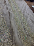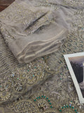 The Faraz Manan Wedding Edition Chiffon Bridal Maxi is a stunning all-white bridal gown masterfully crafted by the celebrated Pakistani designer brand Faraz Manan. Priced at PKR 24,500, this bridal maxi features sheer chiffon draped gracefully over an intricately embroidered underlayer, blending soft elegance with dramatic presence. The flowing silhouette extends into a full-length train and delicate veil—a signature of Faraz Manan’s bridal couture aesthetic that harmonizes traditional embellishments with modern refinement . The dress’s detailed embellishment—think pearls, cutdana, and sequins—is placed in ornate patterns reminiscent of the designer’s Bridal Maxi collections, lending timeless opulence at a notable mid-range value. Crafted to embody both grace and grandeur, this maxi dress perfectly aligns with Faraz Manan’s refined wedding collection ethos, offering a radiant, memorable silhouette for the discerning bride.