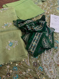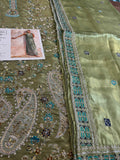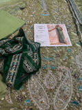 Unveil timeless elegance with the Sania Maskatiya Wedding Edition 'Green Pista' ensemble, a masterpiece designed for unforgettable bridal and formal events. This stunning sleeveless long shirt, crafted from luxurious chiffon, features exquisite all-over embroidery in a captivating pistachio green hue, making it a highly desirable piece for Pakistani designer wear enthusiasts. The intricate hand-embellished details and traditional motifs, signature to the esteemed Sania Maskatiya brand, are strategically placed to enhance the silhouette, offering a blend of traditional craftsmanship and modern appeal. Priced at $18500, this chiffon bridal piece is a prime inventory item for those seeking high-end, designer wedding wear, perfectly aligning with searches for Sania Maskatiya green pista dress, designer chiffon bridal, and Pakistani wedding formal wear