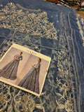 Make a grand entrance on your special day with this breathtaking bridal lehenga from the Nayra Wedding Collection. The stunning blue chiffon ensemble is a true masterpiece, featuring an intricate display of silver and gray embroidery. The long-sleeved choli is heavily embellished, complemented by a gorgeous full skirt with a flowing train. The detailed patterns and sparkling stonework add a touch of regal elegance, making it the perfect choice for a bride who wants to look and feel like a queen. This set includes the choli, lehenga, and a matching embellished dupatta, all crafted with meticulous attention to detail.
