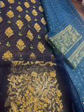 Sara Naqvi Wedding Edition Blue Chiffon Bridal Suit This exquisite Sara Naqvi chiffon bridal suit, part of the Wedding Edition collection, showcases a rich blue color lavishly adorned with intricate gold embroidery and embellishments, characteristic of a luxury formal piece from the brand. The ensemble features a long-sleeved kameez (shirt)...